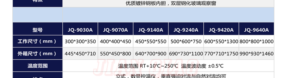 产品型号:JQ-9030 品牌:剑 乔 用途:精密高温试验箱用于对电子电工、汽车摩托、航空航天、橡胶、塑胶、金属、船舶兵器、高等院校、科研单位等相关产品的零部件及材料在高温恒温变化的情况下,检验其各项性能指标咨询热线:13829135130