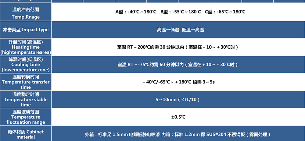 两厢式冷热冲击试验箱型号命名及参数表