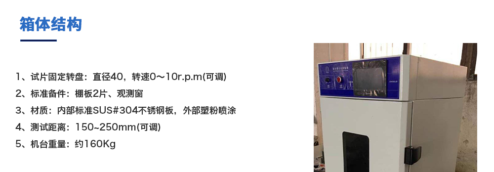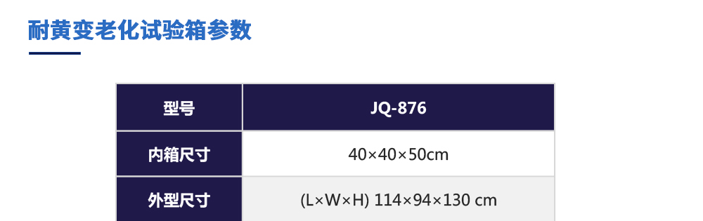 产品型号:JQ-876 品牌:剑 乔 用途:耐黄变老化试验箱适用于仿真阳光的紫外线辐射及热度,设备满足老化与耐黄变2种测试条件,老化是指促进加硫橡胶之劣化,以计算加热前后拉力及伸长之变化率,一般认为在70 ℃下测咨询热线:13829135130