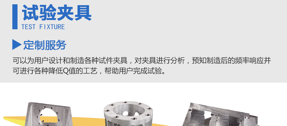 用途:可以为用户设计和制造各种试件夹具,对夹具进行分析,预知制造后的频率响应并可进行各种降低Q值的工艺,帮助用户完成试验。