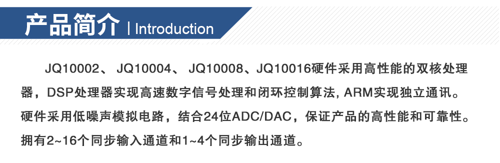 产品型号: JQ-10002 品牌:剑 乔 用途: JQ10002、 JQ10004、 JQ10008、JQ10016硬件采用高性能的双核处理器,DSP处理器实现高速数字信号处理和闭环控制算法, ARM实现独立通讯。咨询热线:13829135130