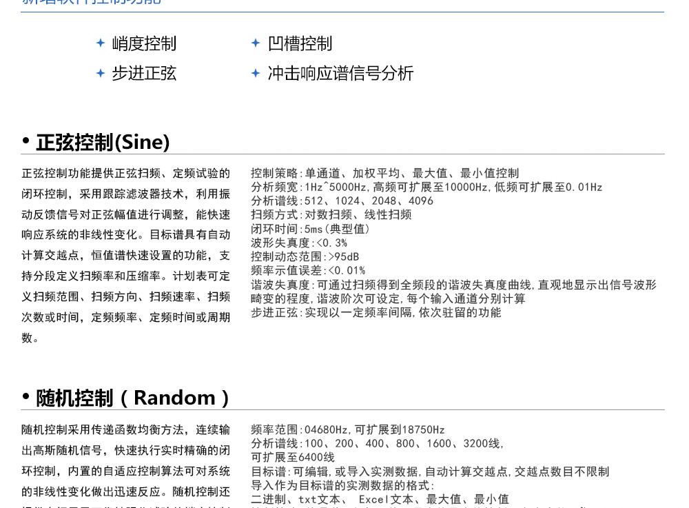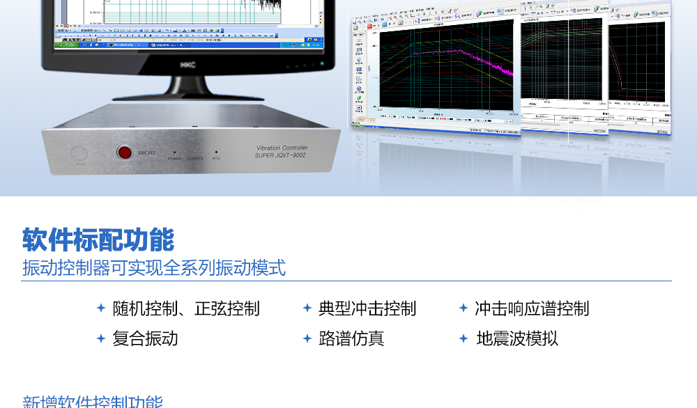 产品型号:JQVT-9000系列 品牌:剑 乔 用途:振动控制器可实现全系列振动模式,包括随机控制、正弦控制,典型冲击控制、冲击响应谱控制、复合振动、路谱仿真以及地震波模拟。同时,为了进一步创新振动控制技术,以适应更咨询热线:13829135130