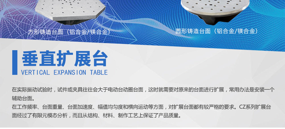 产品型号:CZ0303 品牌:剑 乔 用途:供应众多型号的标准化垂直水平扩展台,而且支持客户的特殊定制,从而满足客户对振动台性能扩展的需求。在实际振动试验时,试件或夹具往往会大于电动台动圈台面,这时就需要对咨询热线:13829135130